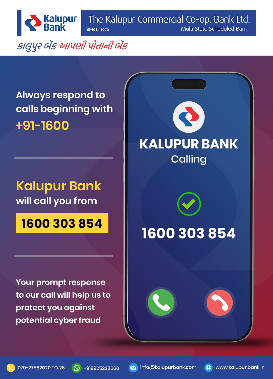 Kalupur Bank Bhavan, Near Income Tax Circle, Ashram Road, Ahmedabad : 380014, Gujarat, India.