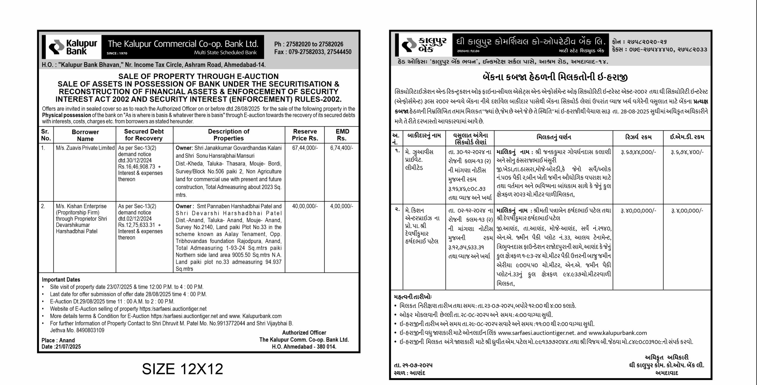 DownloadM/s Zuavis Private Limited and M/s. Kishan Enterprise - Auction Notice