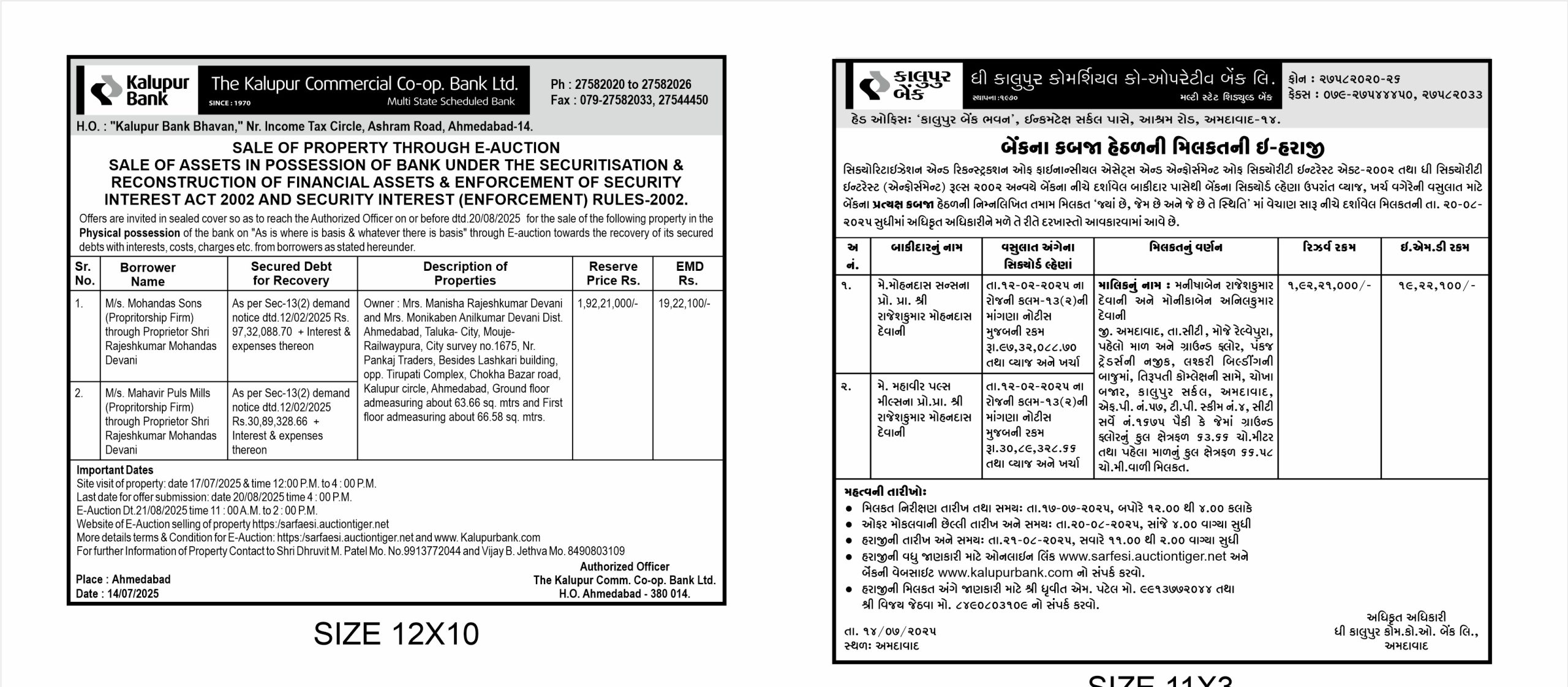 DownloadM/S MOHANDAS SONS & MAHAVIR PULSE MILLS - Auction Notice