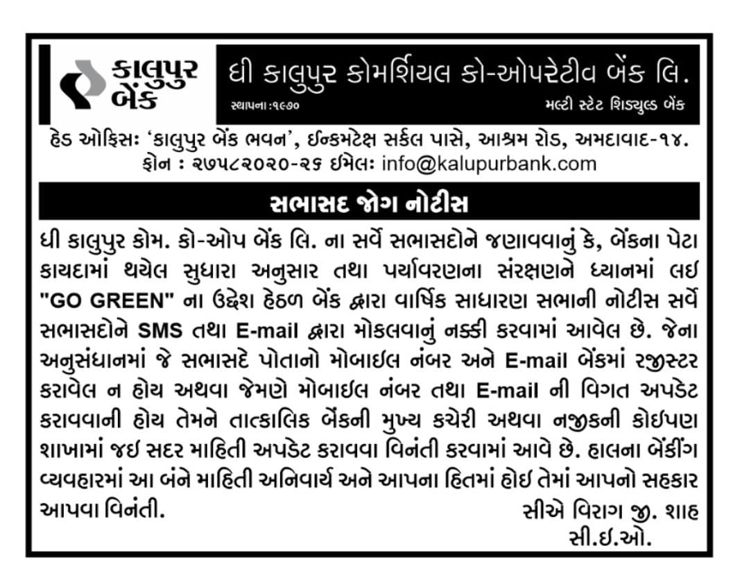 Kalupur Bank Bhavan, Near Income Tax Circle, Ashram Road, Ahmedabad : 380014, Gujarat, India.
